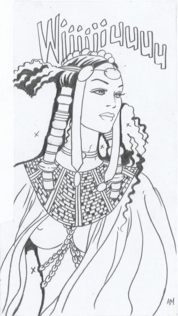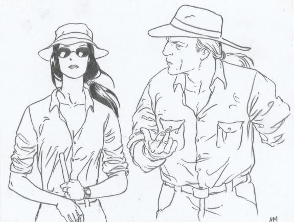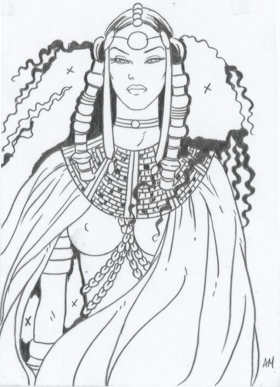 > Catalogue > Ana Miralles > Djinn > Une Jeunesse éternelle > Planche originale n°2 accompagnée de ses 7 étapes préparatoires à la mine de plomb sur calque