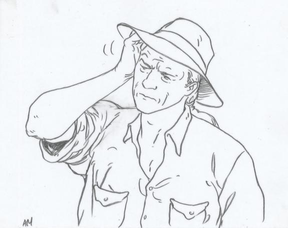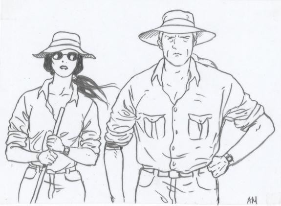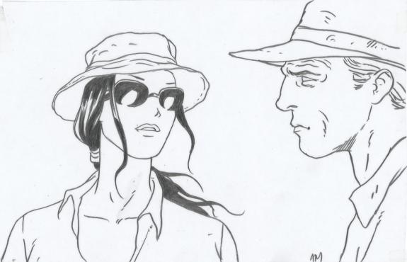 Planche originale n°2 accompagnée de ses 7 étapes préparatoires à la mine de plomb sur calque