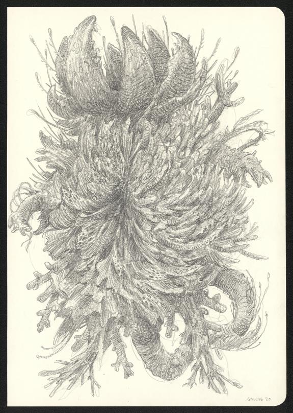 > Catalogue > Armel Gaulme > Les Carnets Lovecraft > Les Rats dans les murs > Illustration originale. Lot de 5 dessins.