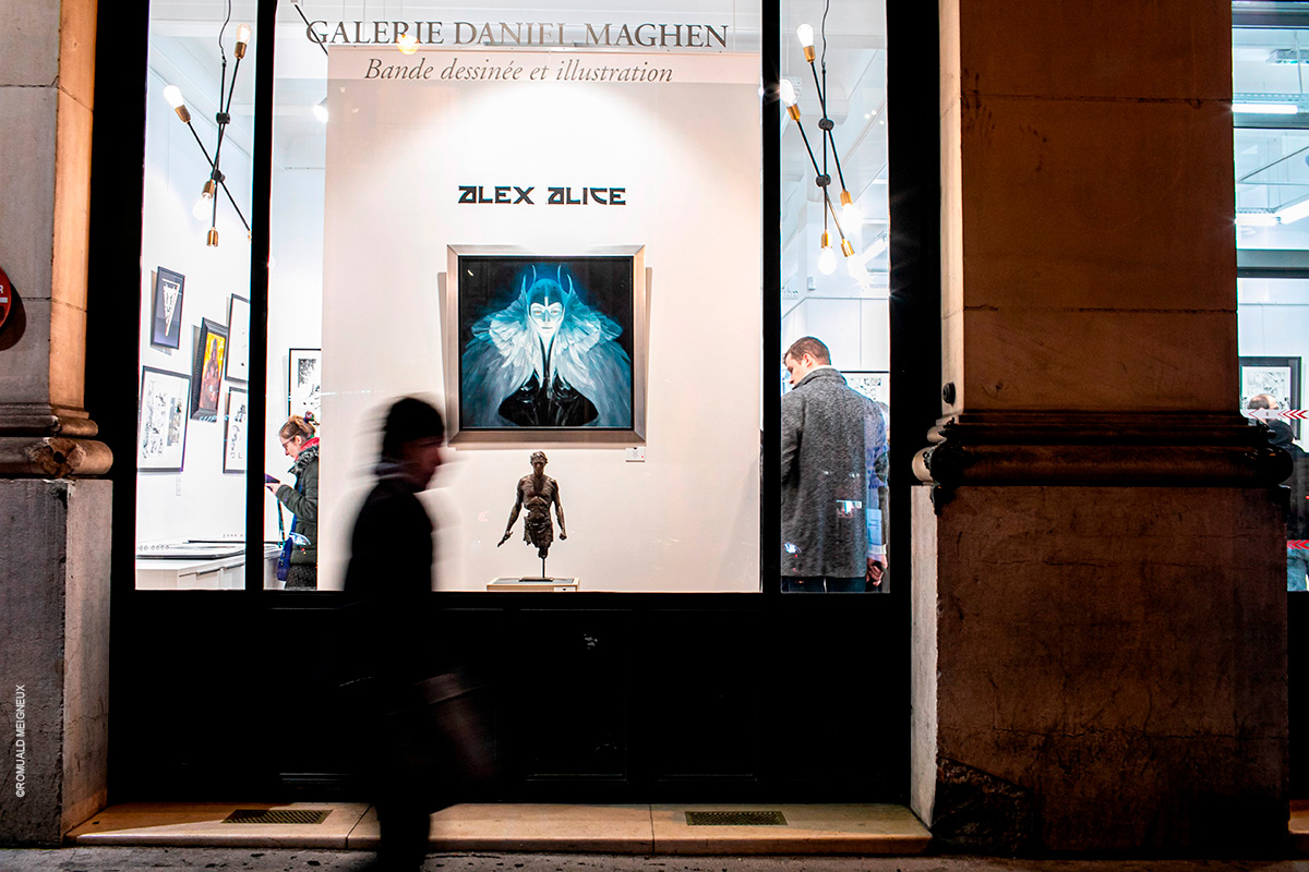PROLONGATION DE L'EXPOSITION JUSQU'AU 31 MARS La galerie Daniel Maghen est fière de consacrer une exposition à Alex Alice autour de ses séries Le Troisième Testament (éd. Glénat) et Siegfried (éd. Dargaud), du 27 février au 14 mars 2020. Avec Le Troisième testament, Alex Alice et Xavier Dorison ont donné naissance à une série culte des années 1990-2000. Le duo réinvente le mythe du troisième testament à travers un récit noir et ésotérique qui se déroule dans une Europe gouvernée par la religion chrétienne au début du XIVe. Une vaste enquête mystique superbement rendue par le dessin d’Alex Alice, dont le trait réaliste et le découpage ultra dynamique offre de magistrales scènes de bataille et des atmosphères à couper le souffle. Une soixantaine de planches originales noir et blanc, accompagnées de leurs mises en couleur seront présentées, ainsi que des peintures inspirées de la saga. L’exposition mettra également à l’honneur la deuxième bande dessinée emblématique de l’auteur : Siegfried, la toute première série dont il signe à la fois le dessin et le scénario. Inspirée du mythe nordique de L’Anneau de Nibelung, celui-là même qui a inspiré à Wagner un de ses plus beaux opéras, Alex Alice raconte le destin fabuleux de Siegfried dans sa quête pour rejoindre le monde des hommes. Un scénario audacieux, magistral et épique, servi par le dessin majestueux d’Alex Alice et sa mise en couleur quasi mystique, qui fait de cette trilogie haletante l’un des chefs-d’œuvre du genre. Les magnifiques peintures des couvertures des trois albums de la série seront présentées lors de l'exposition, ainsi qu'une sélection de 80 planches et leurs mises en couleur originale. Daniel Maghen et Alex Alice sont heureux de vous inviter au vernissage de l’exposition le vendredi 28 février à 19h.
