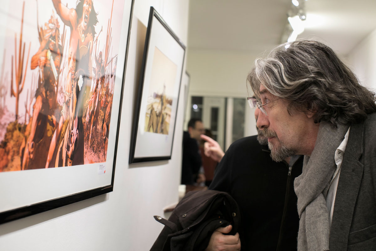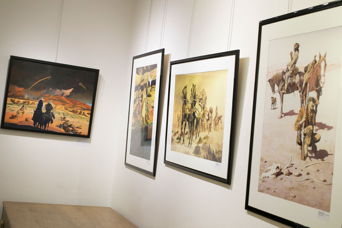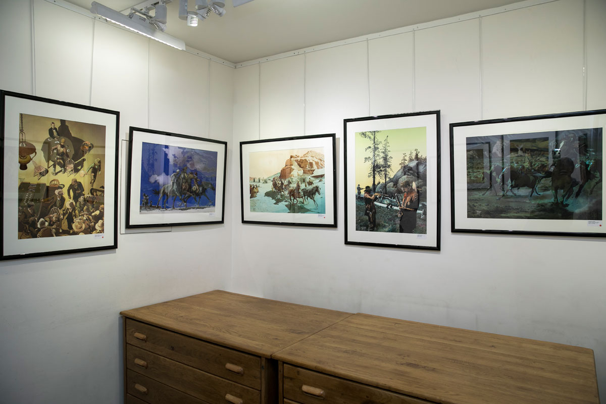 Après trois ans de travail, Christian Rossi présente un ensemble de 37 peintures à l’huile et illustrations grand format à l’aquarelle qui restituent l’ambiance de l’ouest américain. Une quarantaine de planches issues des séries Jim Cutlass (sc. Giraud, éd. Casterman), W.E.S.T. (sc. Nury / Dorison, éd. Dargaud) et Deadline (sc. Bollée, éd. Glénat) complètent l’exposition.