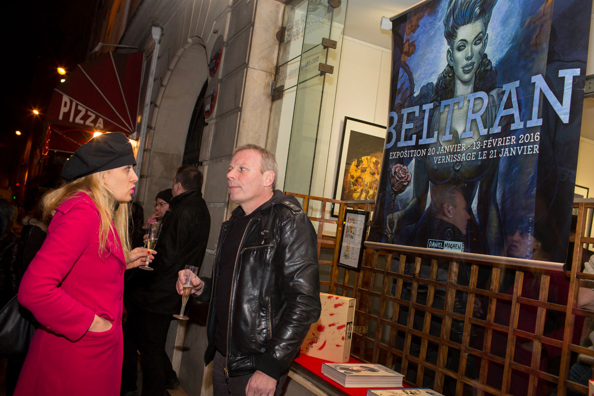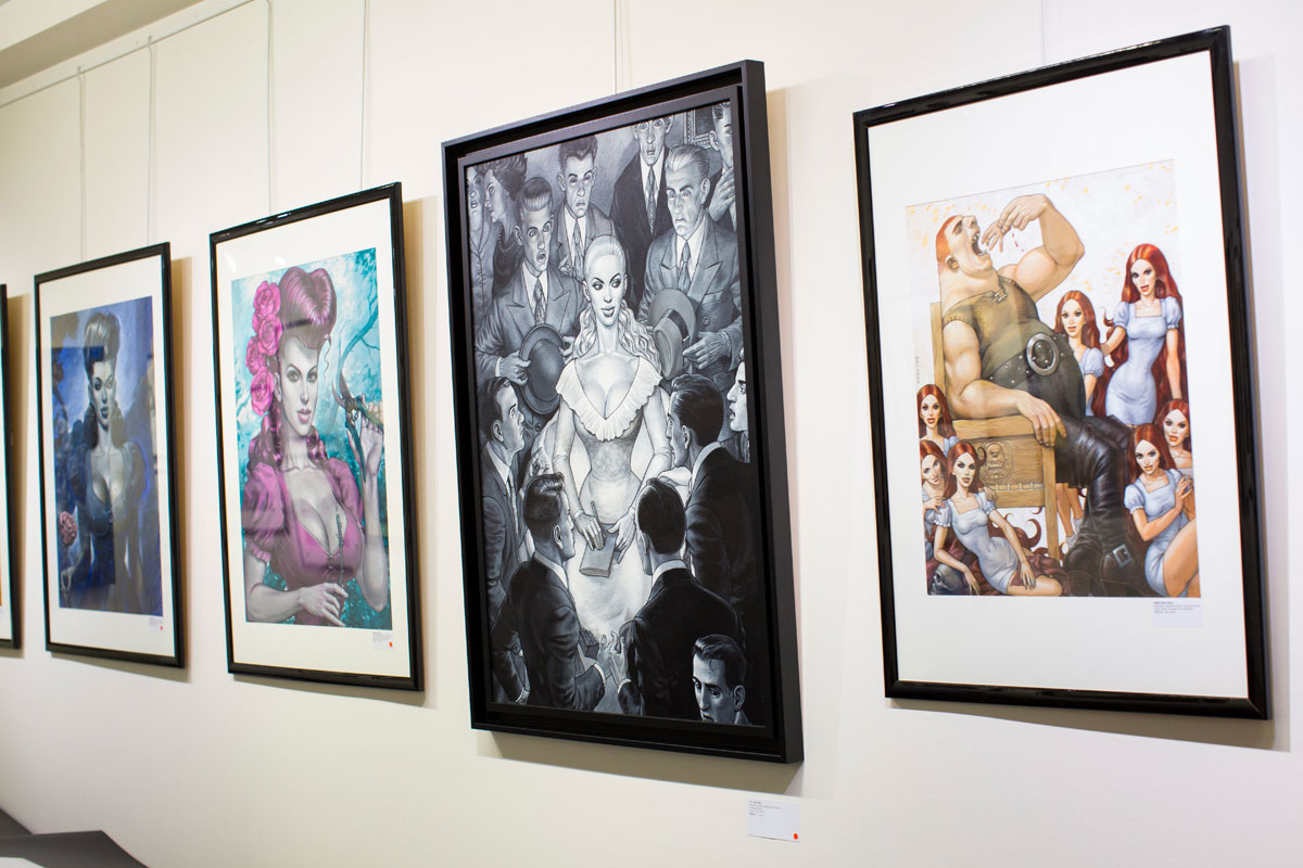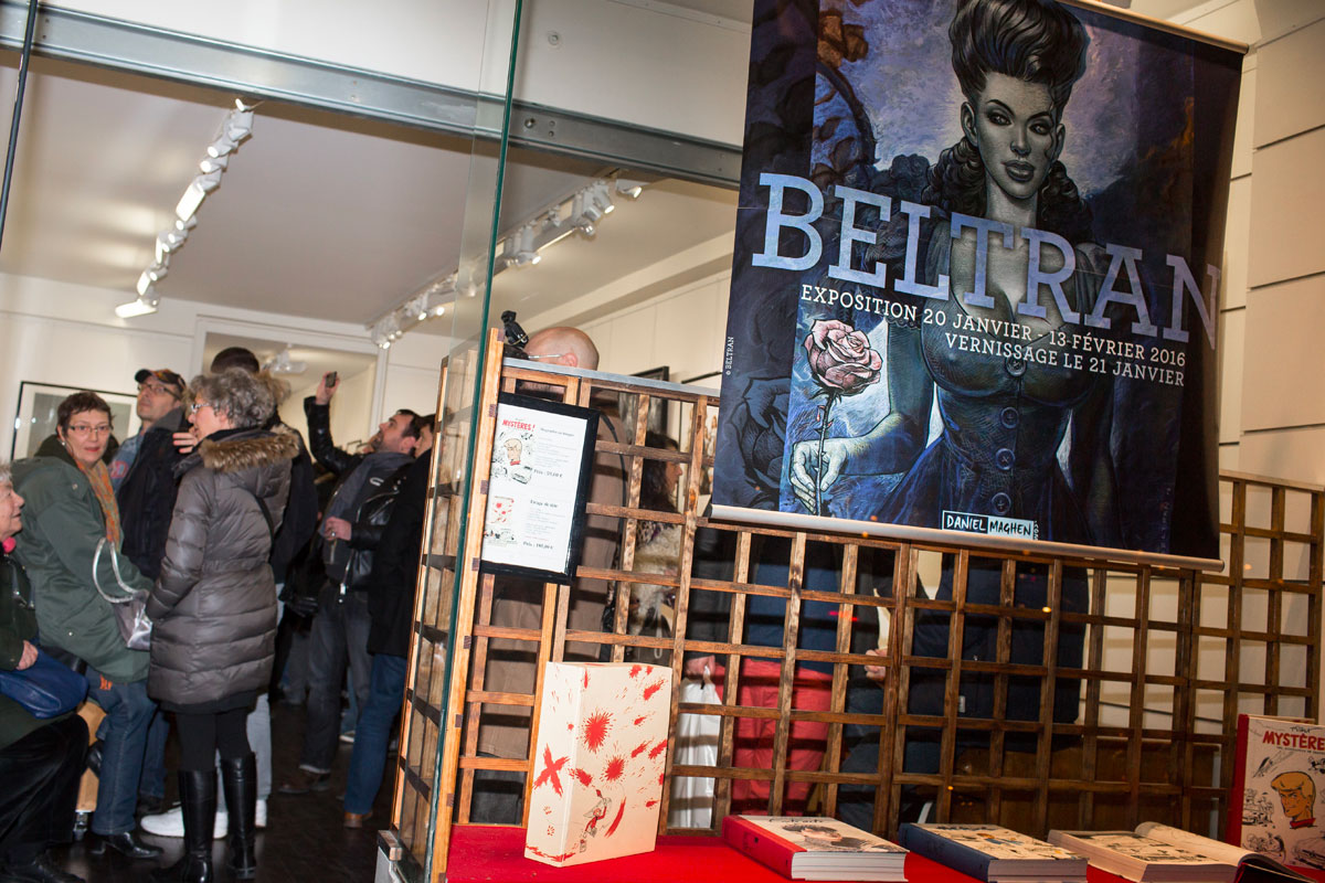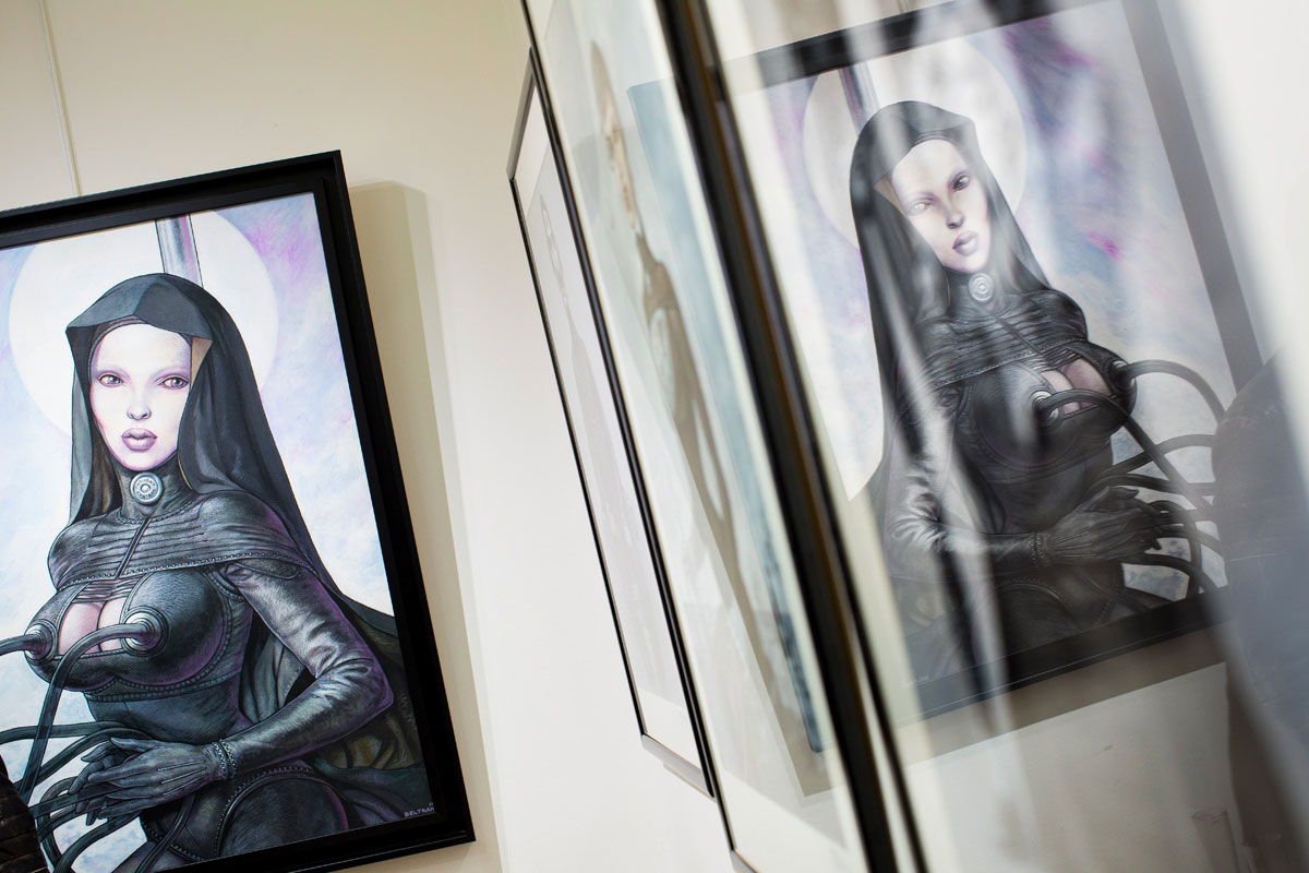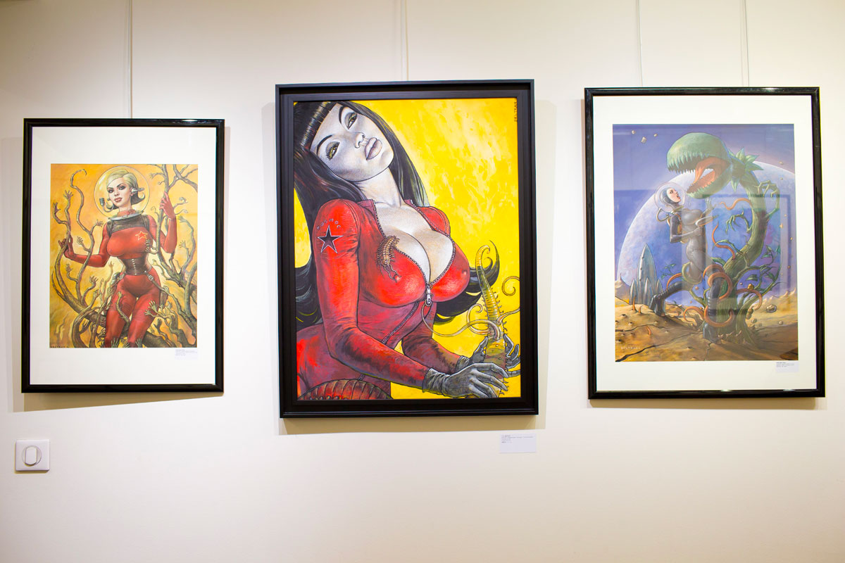 Rare opportunité d’explorer l’imaginaire de Fred Beltran, cette exposition exceptionnelle permet de plonger dans les travaux les plus personnels de l’auteur de Megalex. Il y dépeint un univers terriblement rockabilly au parfum glamour, nourri de science-fiction et de rock’n’roll. Les madones plantureuses y côtoient des individus bio-mécaniques, les femmes sensuelles provoquent l’admiration, les figures grotesques marchent aux côtés de personnages mythologiques. Les clins d’œil à des personnages connus, mythologiques ou fictionnels ne manquent pas et l’amateur aura plaisir à les chercher en passant d’une illustration à l’autre. Humour décalé et sensualité sont les maîtres-mots qui caractérisent le monde intérieur qui l’habite et l’accompagne depuis toujours.