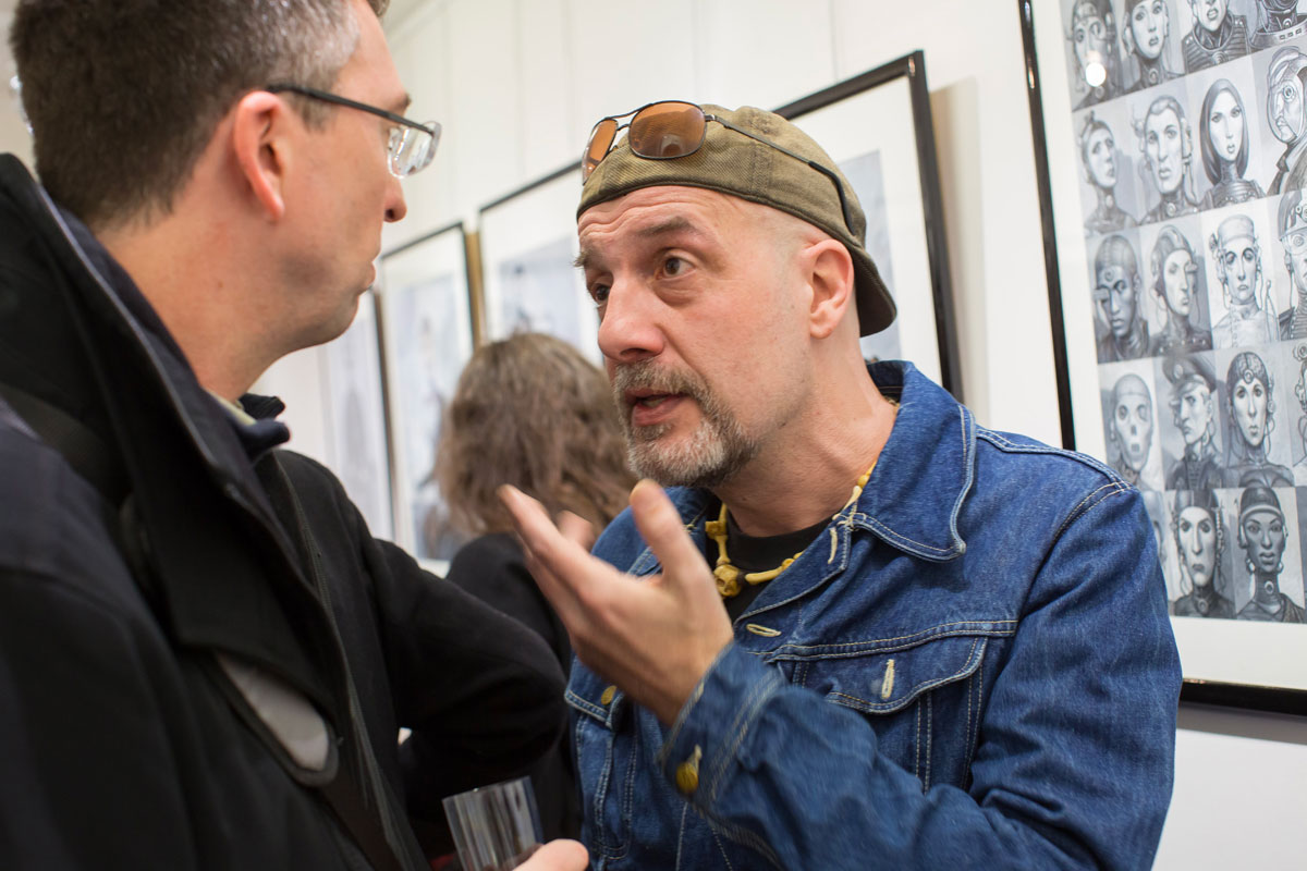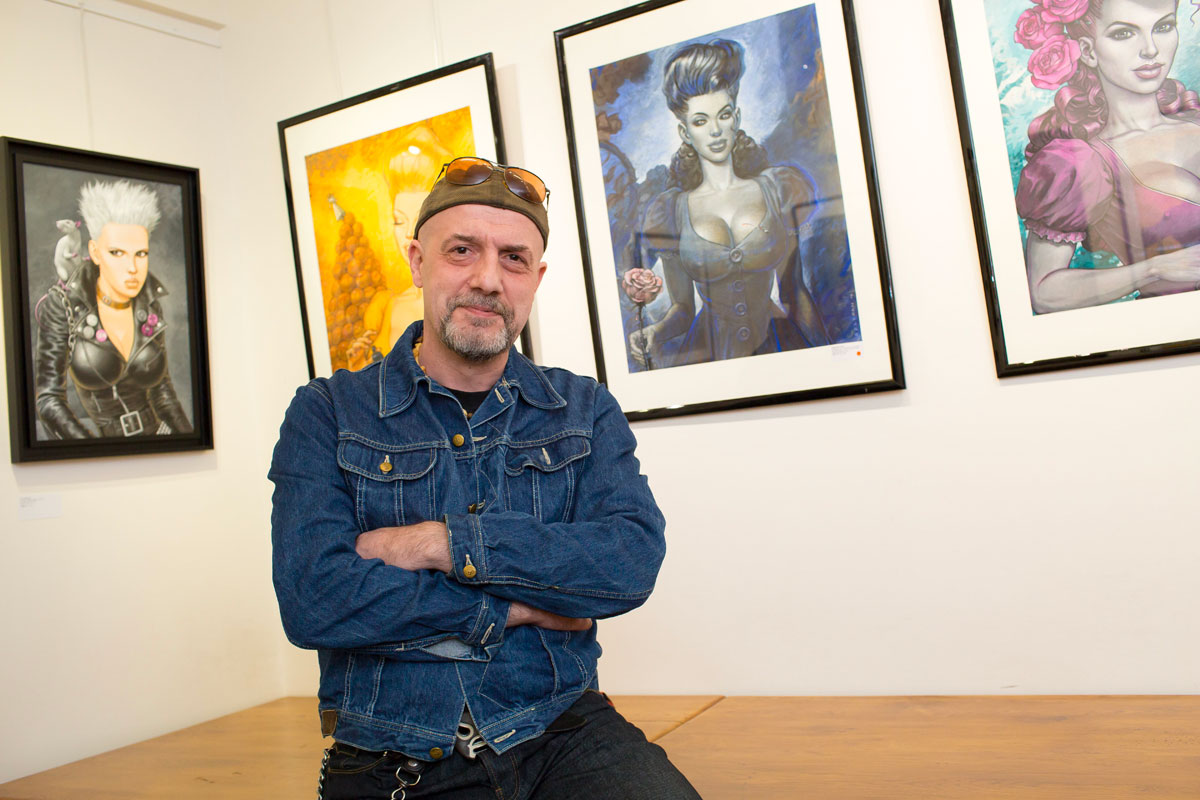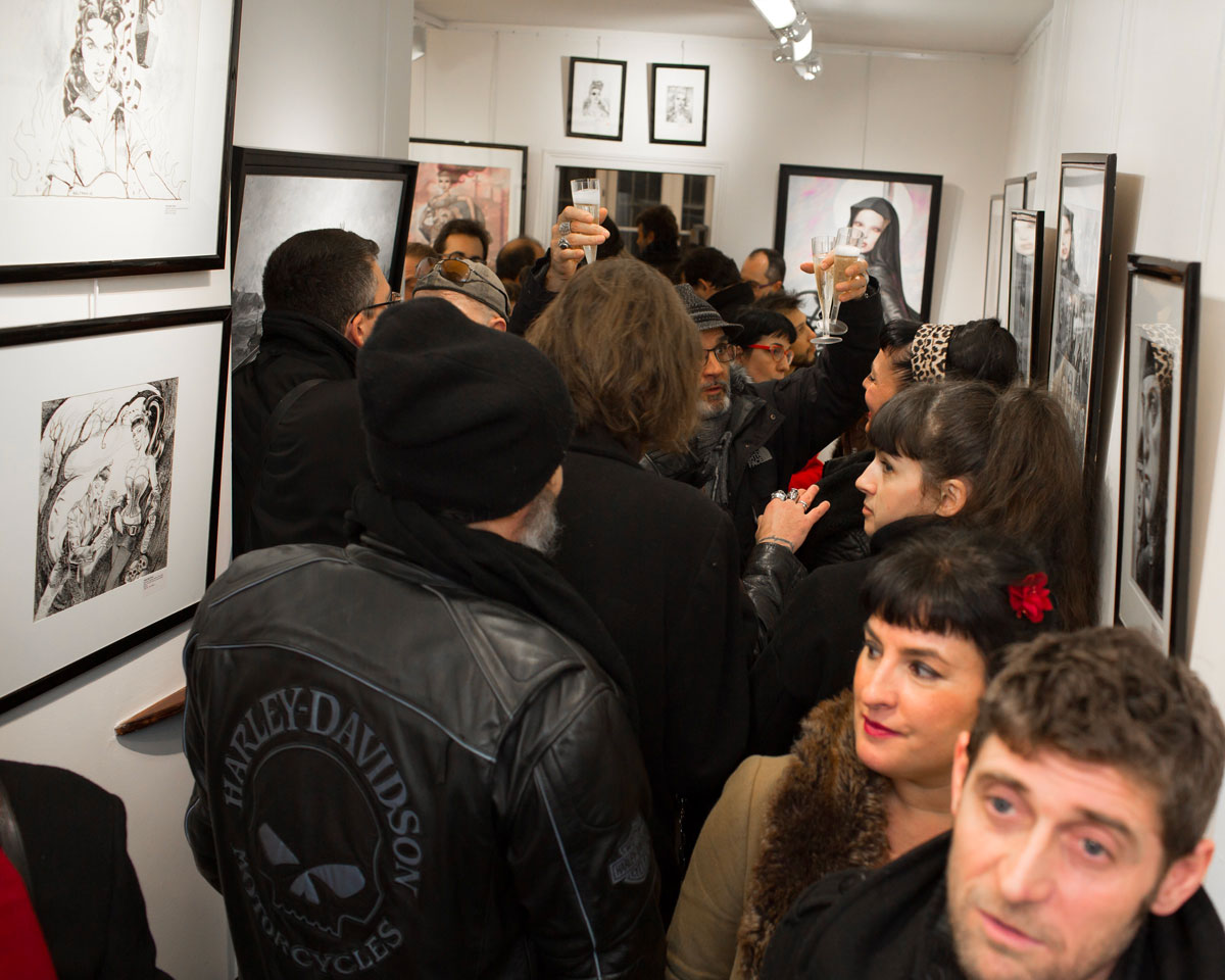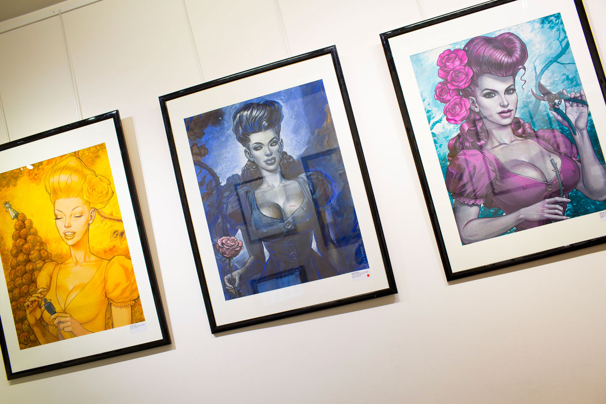 Rare opportunité d’explorer l’imaginaire de Fred Beltran, cette exposition exceptionnelle permet de plonger dans les travaux les plus personnels de l’auteur de Megalex. Il y dépeint un univers terriblement rockabilly au parfum glamour, nourri de science-fiction et de rock’n’roll. Les madones plantureuses y côtoient des individus bio-mécaniques, les femmes sensuelles provoquent l’admiration, les figures grotesques marchent aux côtés de personnages mythologiques. Les clins d’œil à des personnages connus, mythologiques ou fictionnels ne manquent pas et l’amateur aura plaisir à les chercher en passant d’une illustration à l’autre. Humour décalé et sensualité sont les maîtres-mots qui caractérisent le monde intérieur qui l’habite et l’accompagne depuis toujours.
