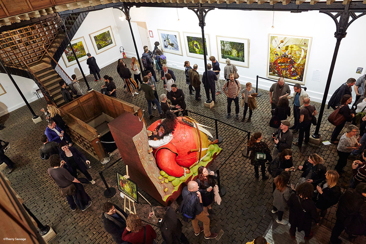 La galerie Daniel Maghen qui accompagne son travail depuis 2012, propose aujourd’hui la première grande rétrospective de cet artiste. Pendant 10 jours plus de 150 œuvres seront exposées au Bastille Design Center, un superbe bâtiment datant du XIXe siècle. Cet événement offrira une immersion complète dans le monde enchanteur de Frédéric Pillot à travers de nombreuses peintures à l’acrylique rehaussée de craie, d’illustrations à l’aquarelle ou encore de sculptures reprenant ses personnages phares. On y croisera notamment un ogre de plus de 2 mètres !