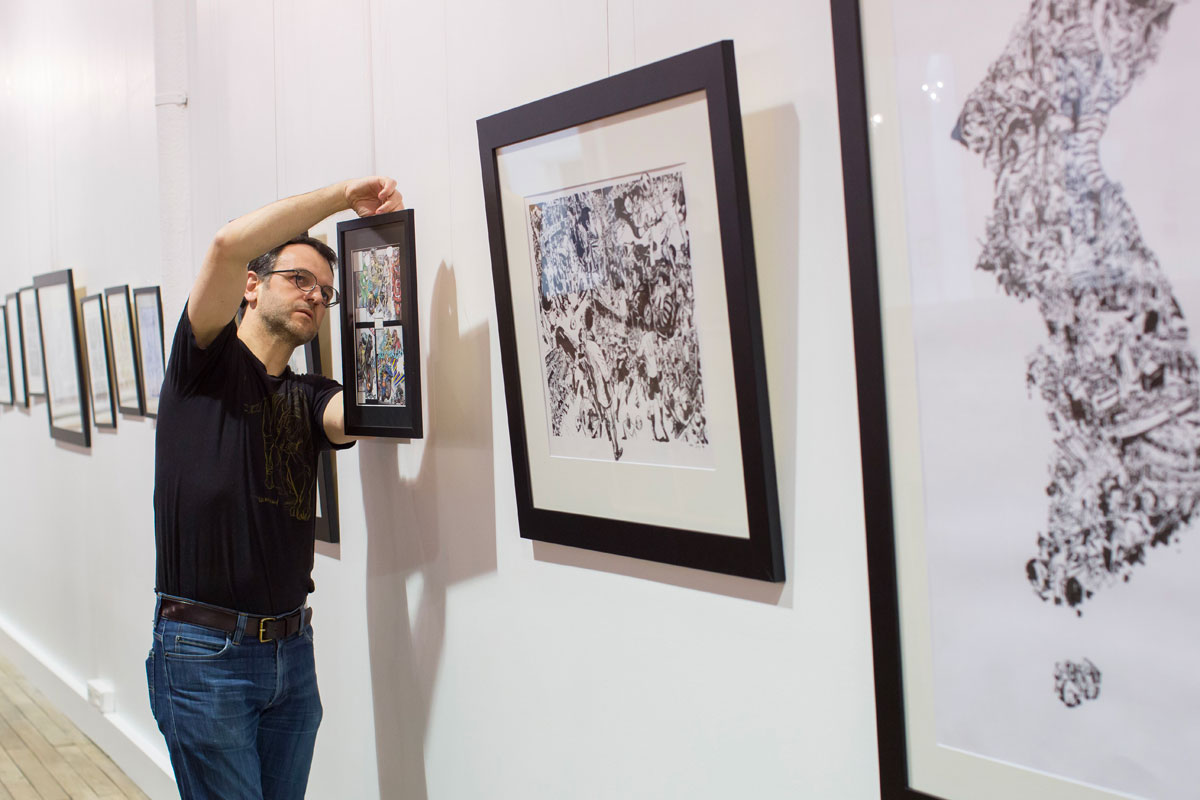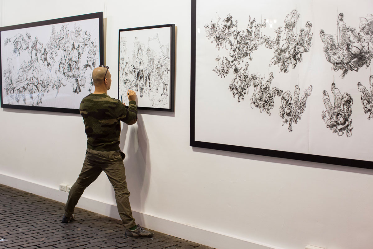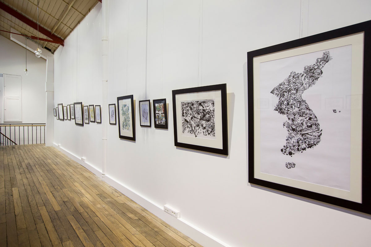 Cet événement organisé par la Galerie Daniel Maghen et les Éditions SuperAni est une première mondiale puisqu'il réunit plus de cent pièces réalisées lors de ses démonstrations en Europe, en Asie et aux États-Unis. L'artiste présentera également sa pièce maîtresse : une illustration dantesque de plus de 5 mètres réalisée en 2012, exposée pour la première fois en dehors de la Corée du Sud. Chose rare pour être soulignée, cette exposition présentera des pièces en couleurs, des planches de ses séries Spy Games (sc. JD Morvan, éd. Glénat) et Tiger The Long Tail (éd. CNC révolution), ainsi que ses travaux de jeunesse.