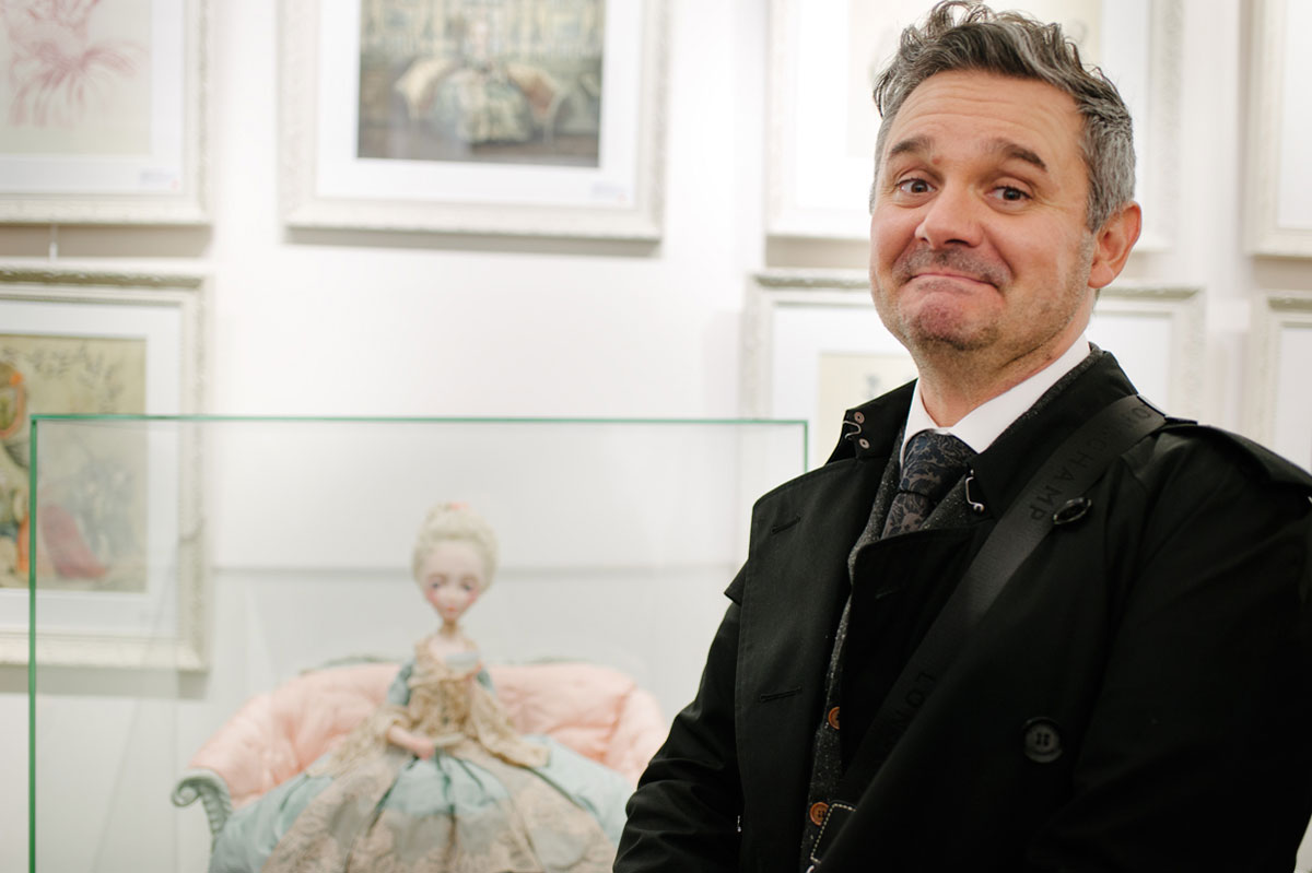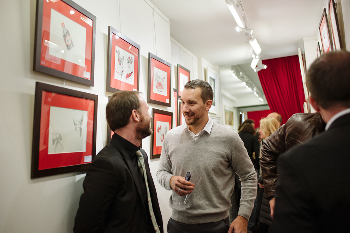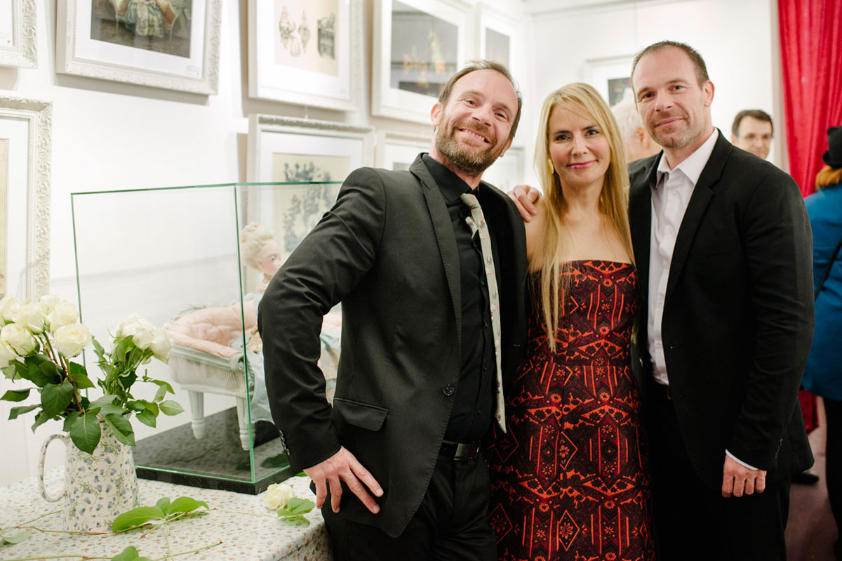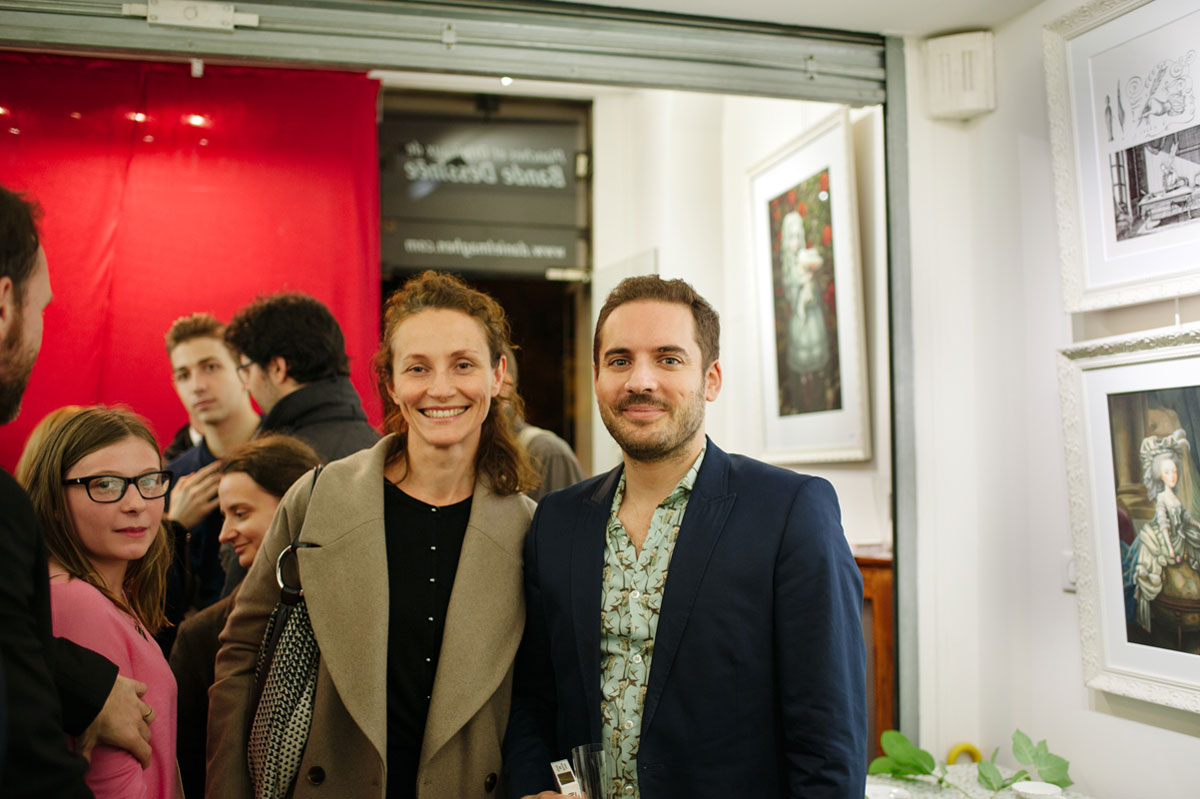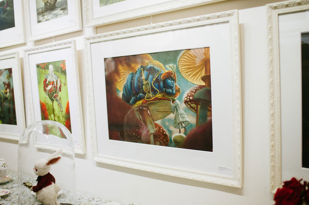 Et c’est à l’occasion de la publication de cet ouvrage aux éditions Soleil-Métamorphose que l’auteur et la galerie Daniel Maghen vous invitent à une « Mad Tea-Party » dans la célèbre galerie du quai des grands Augustins, qui se verra transformée pour l’événement par une scénographie toute en fantaisie. Vous seront présentés près de 70 originaux [issus des livres : Alice aux pays des Merveilles et Marie-Antoinette, Carnet secret d’une reine (éd. Soleil-Métamorphose) ou encore Facéties de chats (éd. Margot)] ; ainsi qu’une série de volumes réalisés en collaboration avec Julien Martinez. Quelques modèles de vêtements coutures aux motifs inspirés de l’univers d’Alice, fruits de la rencontre de l’artiste avec l’atelier Cocolico (concepteur de prêt-à-porter pour enfants, éthique et fabriqué en France) seront également exposés.