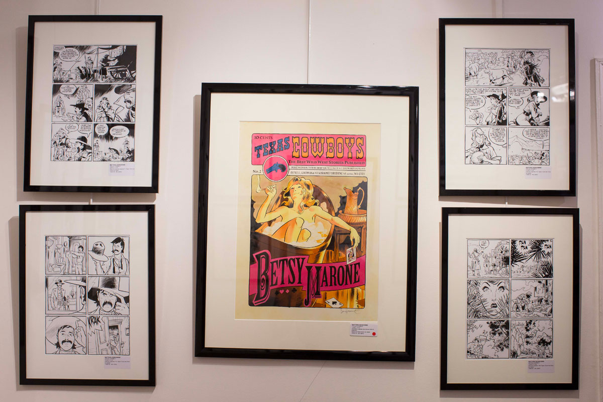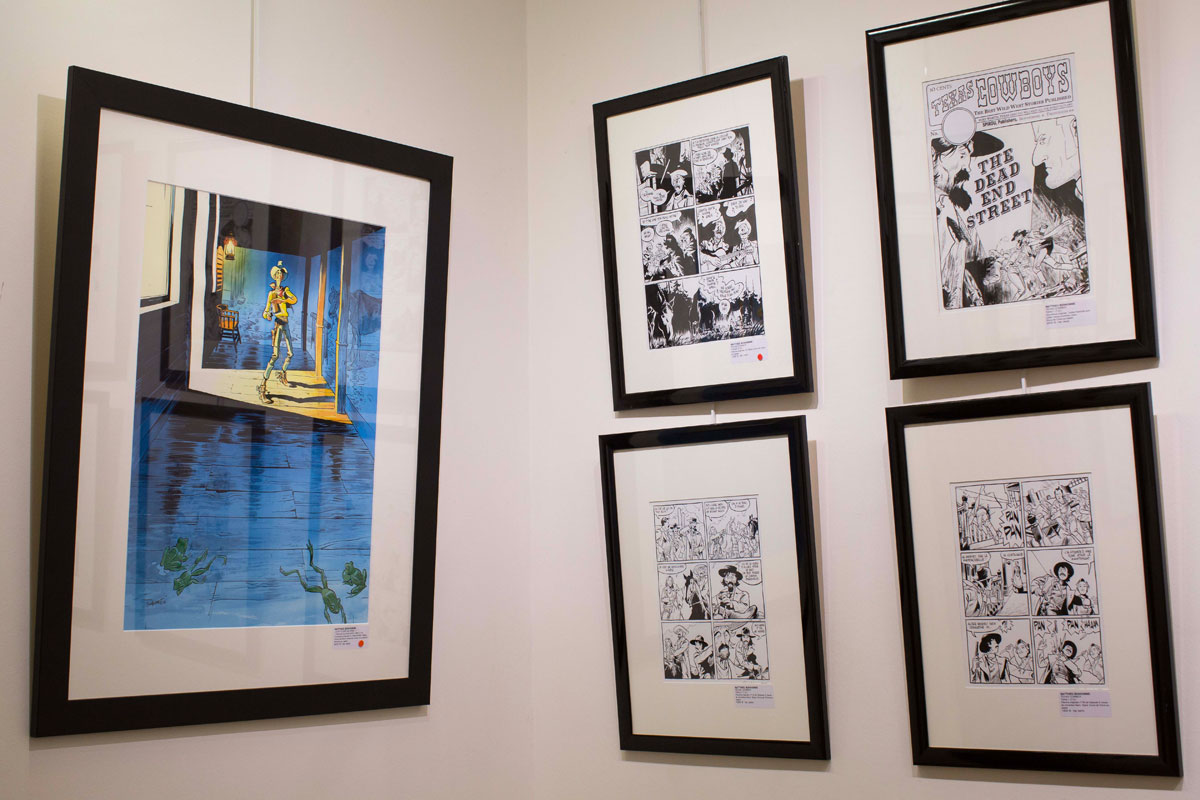 Après l’exposition consacrée à Esteban organisée en février 2015, la galerie Daniel Maghen propose un événement sous le signe du western. Matthieu Bonhomme nous transporte dans des univers riches aux cadrages et à la mise en scène cinématographiques. Ce fabuleux raconteur d’histoires démontre une nouvelle fois sa maîtrise graphique par un trait fin et précis.