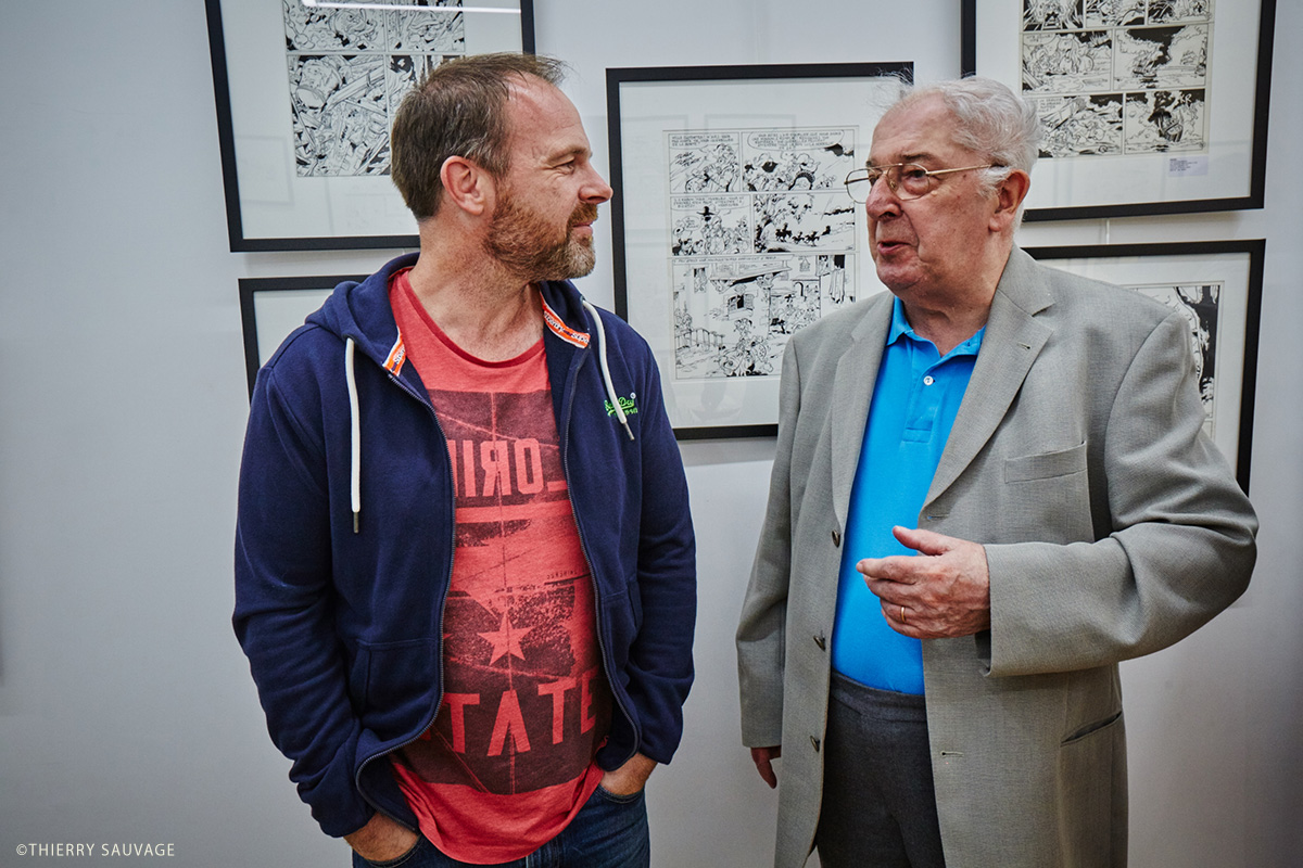 Reconnu autant pour la qualité de ses scénarios que pour son dessin au style classique et à l’encrage impeccable, Gos a collaboré avec les plus grands noms du 9e Art : Franquin, Peyo, Tillieux, Walthéry. Après un passage remarqué au Studio Peyo, il connaît rapidement le succès avec les aventures de son personnage phare : Le Scrameustache (éd. Glénat). Depuis 1973, Gos – rejoint par son fils Walt – anime cette série de science-fiction jeunesse dont le 44e tome vient de paraître en avril 2019, à découvrir à travers une centaine de planches, d’illustrations et de couvertures originales présentées lors de l’exposition. À cette occasion, l’auteur exposera aussi une sélection d’originaux de Gil Jourdan, série créée par Tillieux, reprise et achevée par Gos.