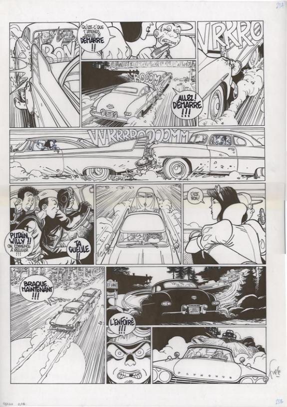 Planche originale n°23 sur calque accompagnée d'un crayonné et d'un bleu