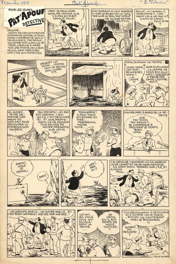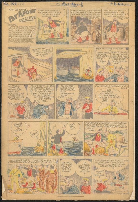 > Catalogue > Gervy > Pat'Apouf > Les Aventures de Pat'Apouf aux Antipodes > Planche originale n°155 accompagnée de son calque de couleurs