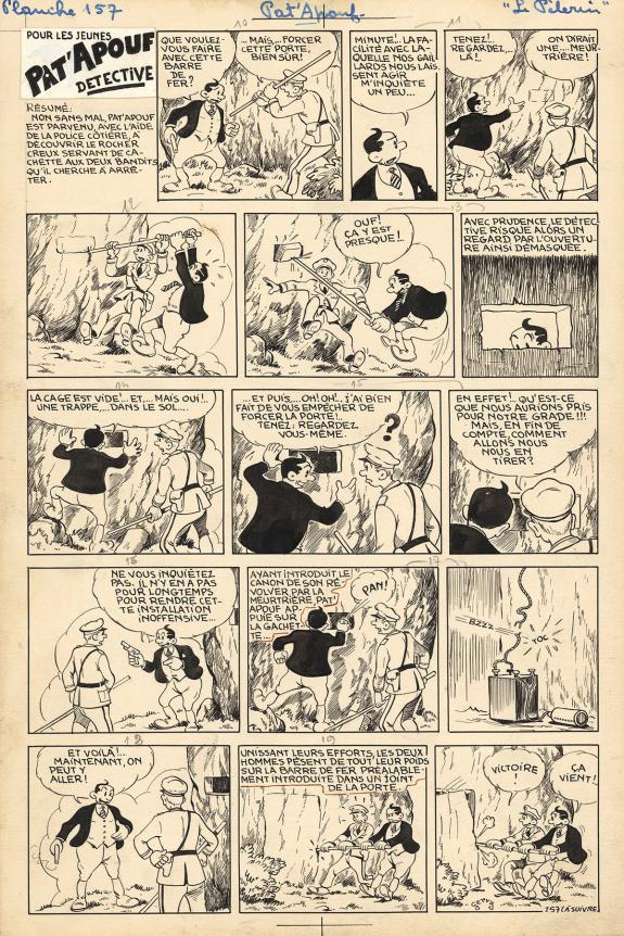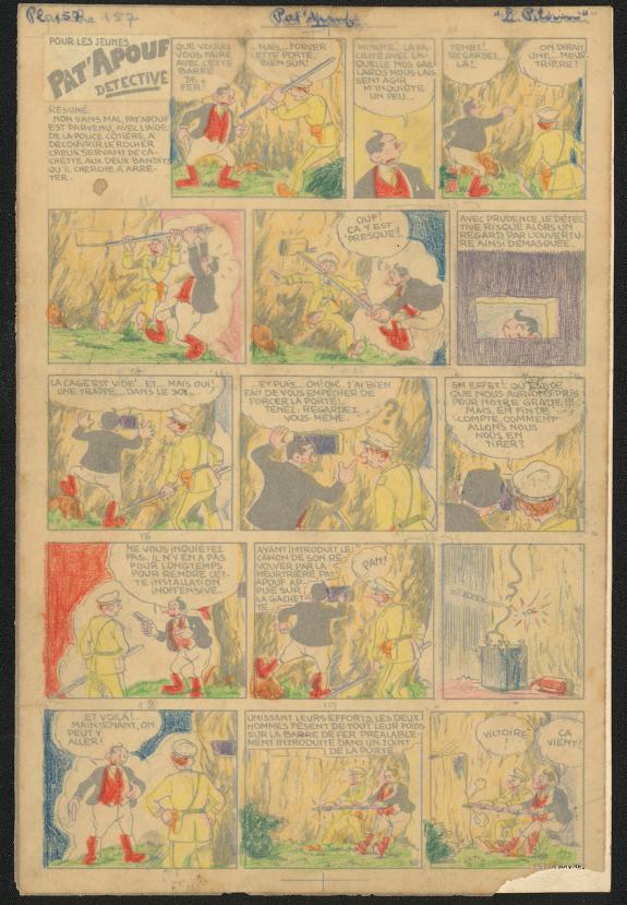 > Catalogue > Gervy > Pat'Apouf > Les Aventures de Pat'Apouf aux Antipodes > Planche originale n°157 accompagnée de son calque de couleurs
