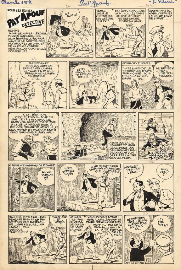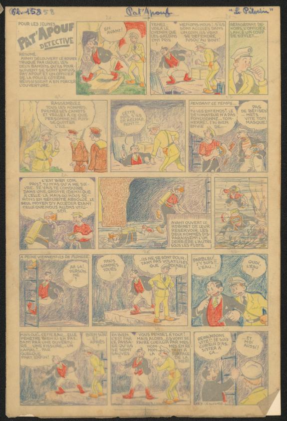 > Catalogue > Gervy > Pat'Apouf > Les Aventures de Pat'Apouf aux Antipodes > Planche originale n°158 accompagnée de son calque de couleurs