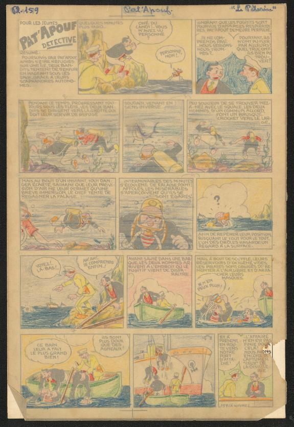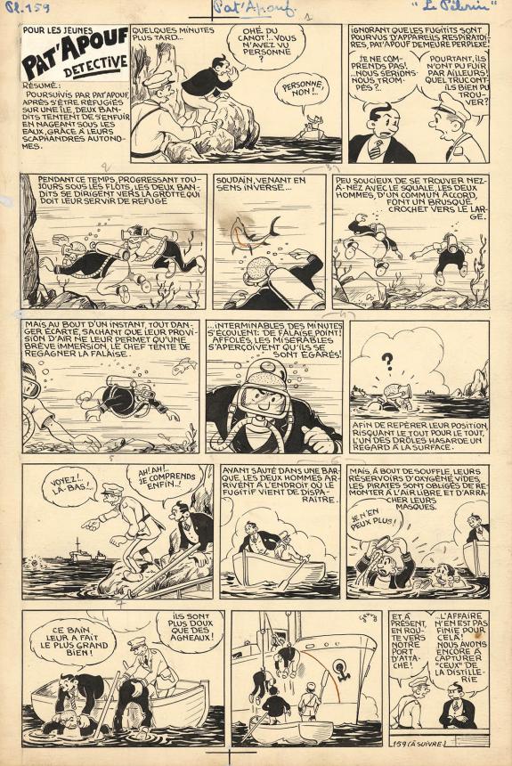 > Catalogue > Gervy > Pat'Apouf > Les Aventures de Pat'Apouf aux Antipodes > Planche originale n°159 accompagnée de son calque de couleurs
