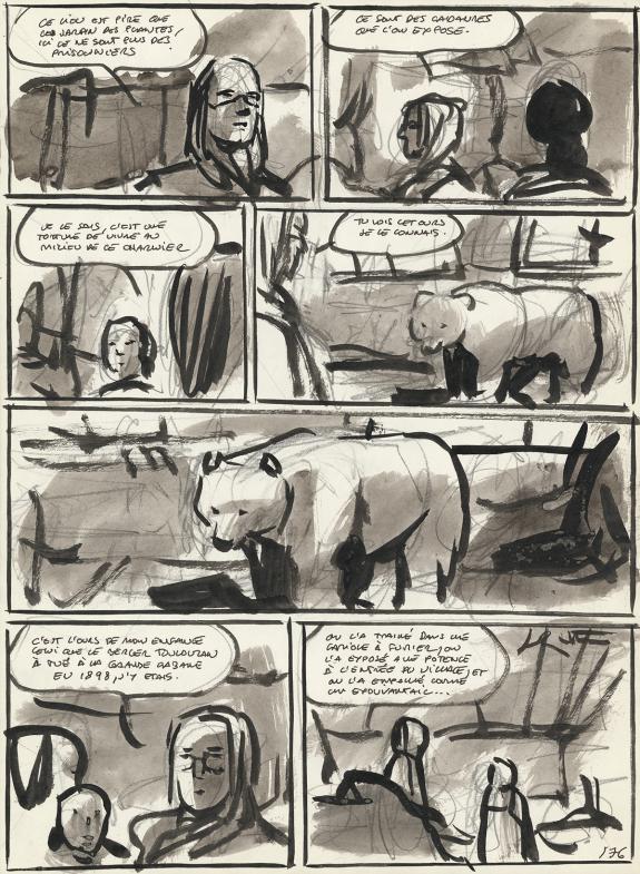 > Catalogue > Jean-Marc Rochette > Album(s) sans série > La Dernière Reine > Planche originale n° 166 accompagnée de sa première étape à l'encre de Chine et au lavis