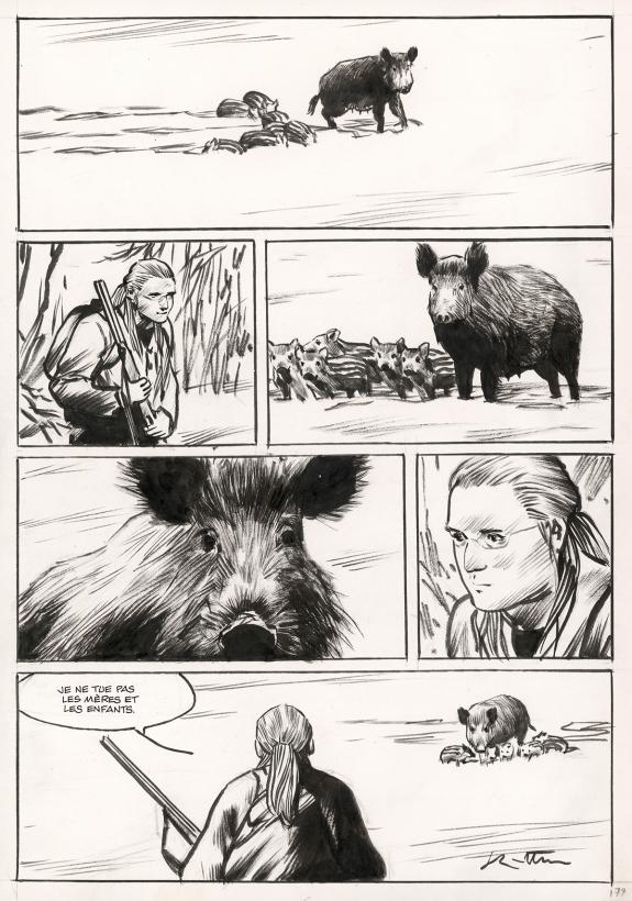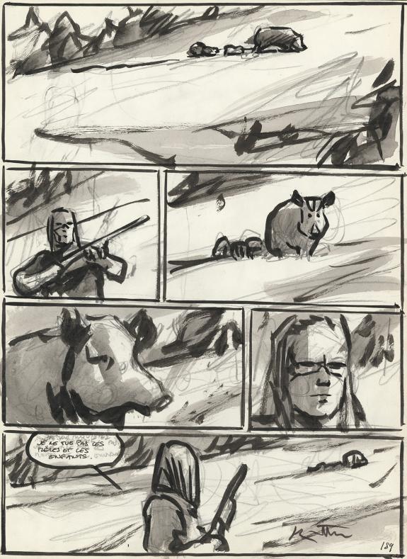 > Catalogue > Jean-Marc Rochette > Album(s) sans série > La Dernière Reine > Planche originale n°179 accompagnée de sa première étape à l'encre de Chine et au lavis