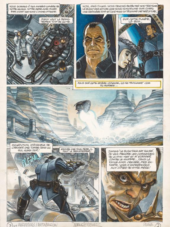 > Catalogue > Juan Gimenez > La Caste des Méta-Barons > Hors-série ? La Maison des ancêtres > Planche originale n°07 accompagnée de sa première étape