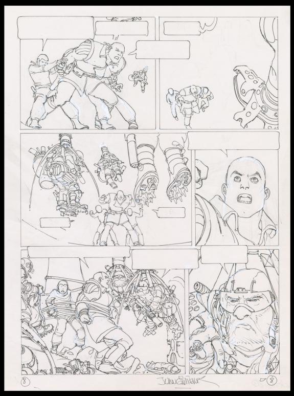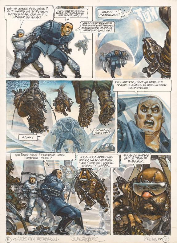 > Catalogue > Juan Gimenez > La Caste des Méta-Barons > Hors-série ? La Maison des ancêtres > Planche originale n°08 accompagnée de sa première étape