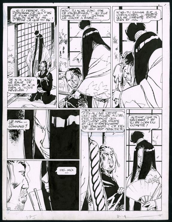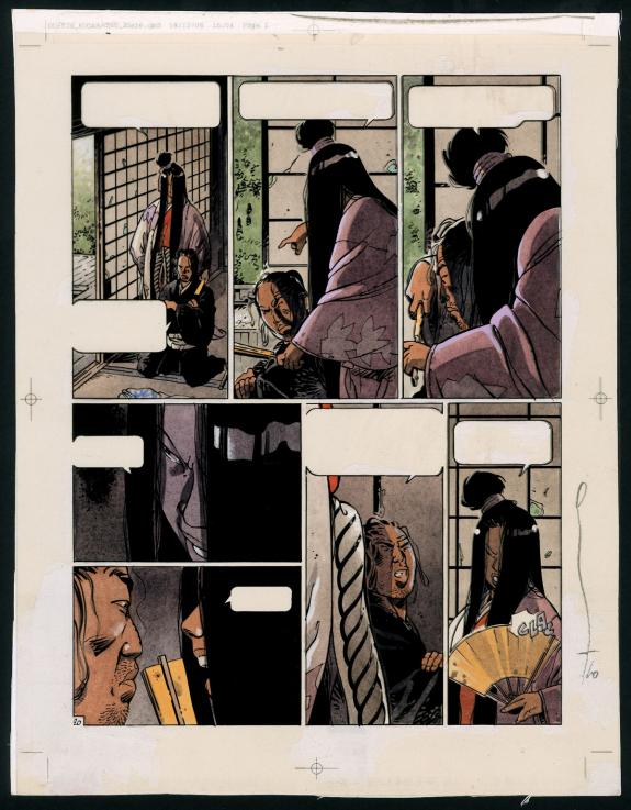 > Catalogue > Marc Michetz > Kogaratsu > Le protocole du mal > Planche originale n°20 accompagnée de son bleu - Dim. support 33,5x44,2 cm