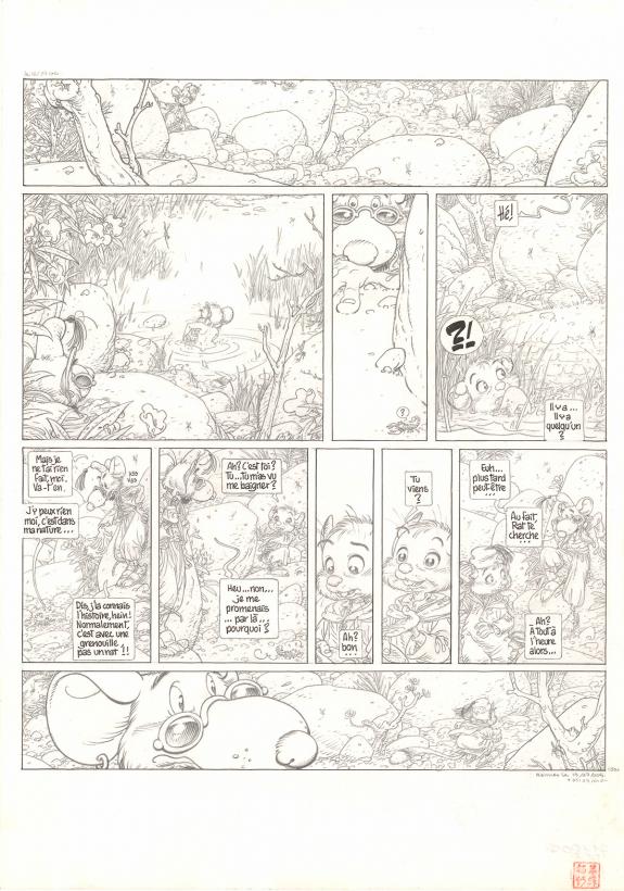 Planche originale n°100, accompagnée de sa mise en couleurs à l'aquarelle sur papier (25,5 x 33,2 cm)