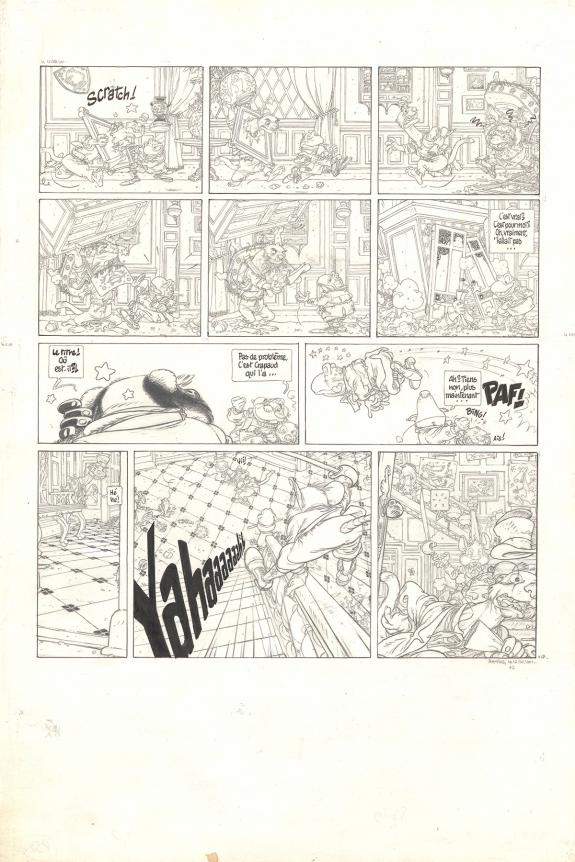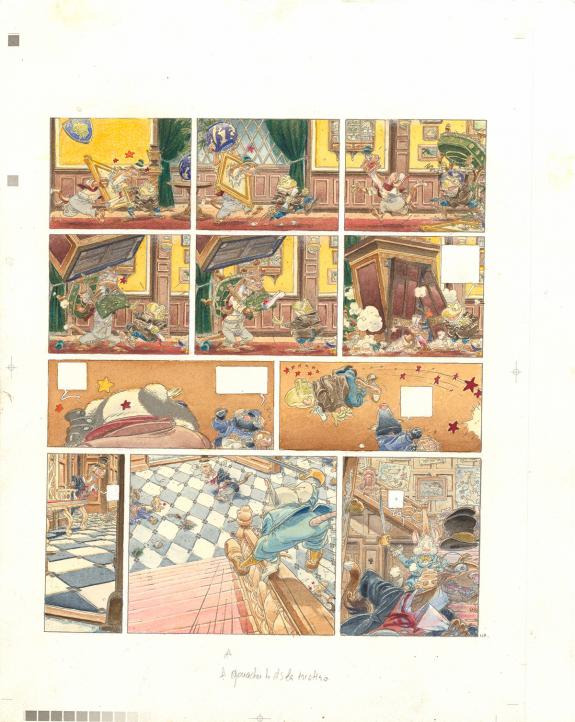 Planche originale n°117, accompagnée de sa mise en couleurs à l'aquarelle (25,8 x 32,3 cm)
