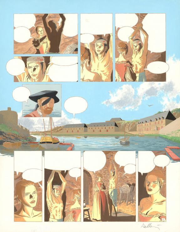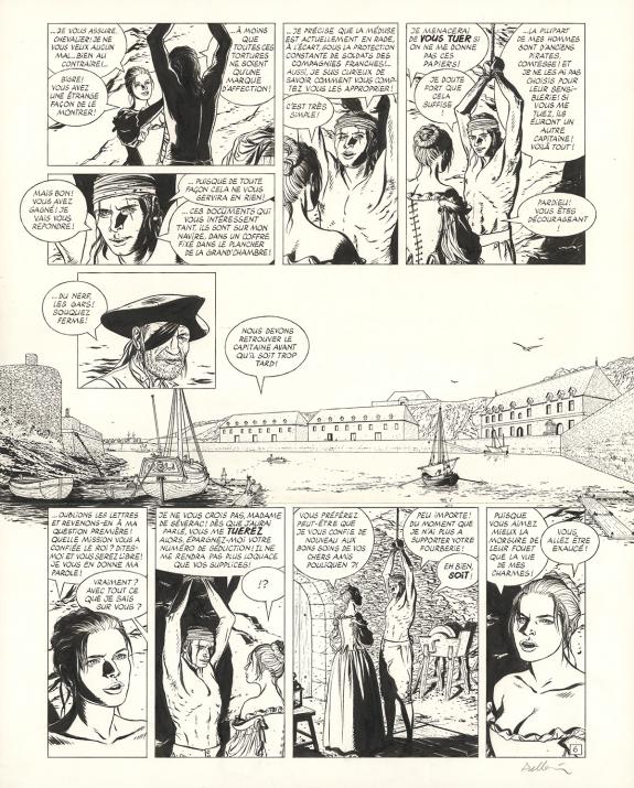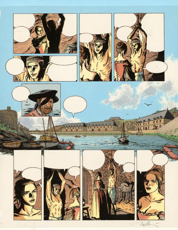 > Catalogue > Patrice Pellerin > L'Épervier > Corsaire du Roy > Planche originale n°6 accompagnée de sa mise en couleur