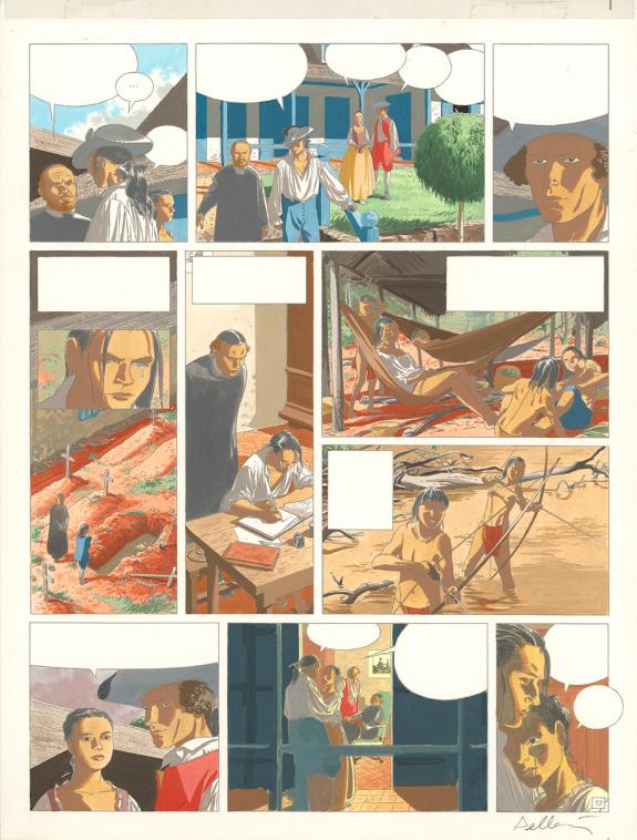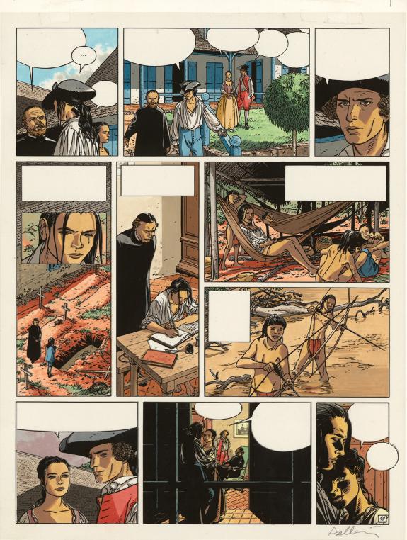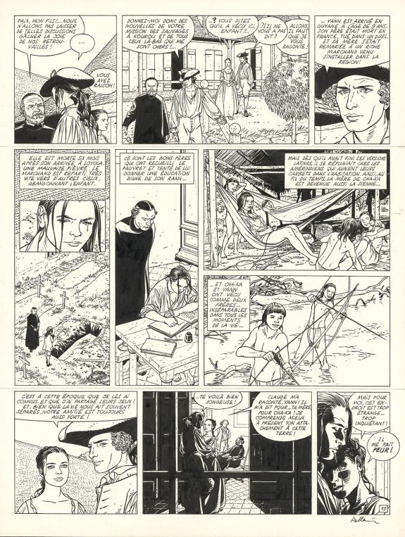 > Catalogue > Patrice Pellerin > L'Épervier > Le Trésor du Mahury > Planche originale n°19 accompagnée de sa mise en couleurs